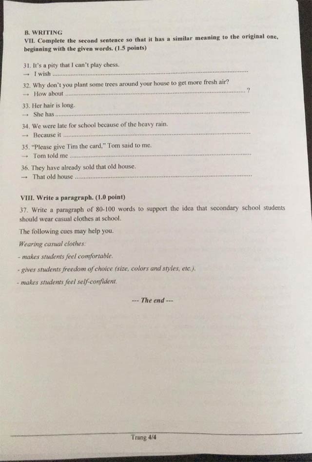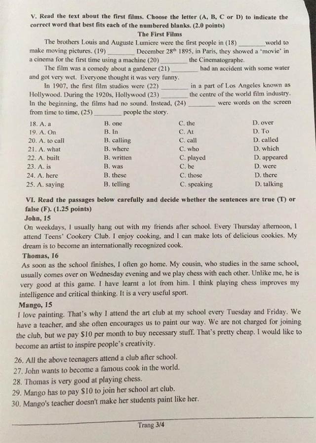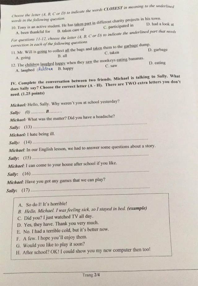 Đáp án đề thi vào lớp 10 môn Tiếng Anh Đồng Nai năm 2021